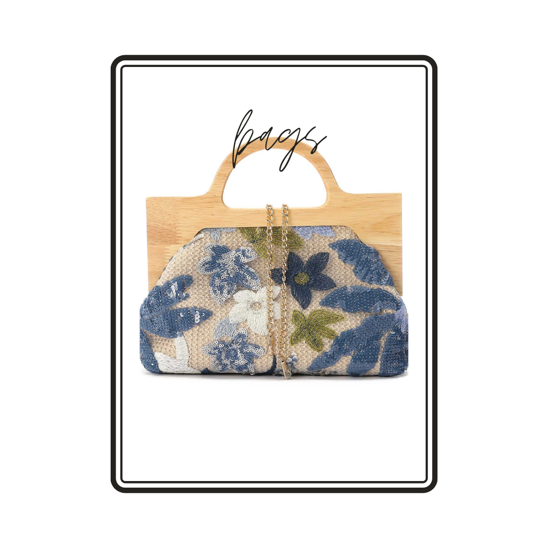 Floral Sequin Wooden Handle Clutch β Multicolor