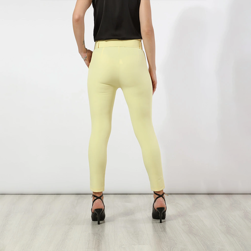 Structured Skinny Pants with Fabric Belt ƒ?? Butter Yellow