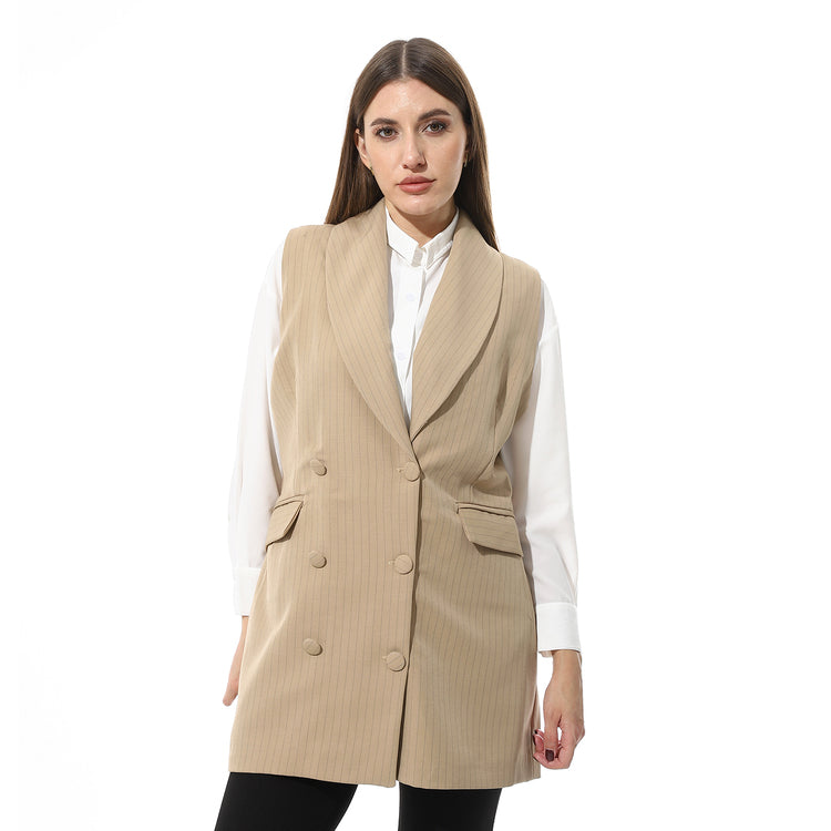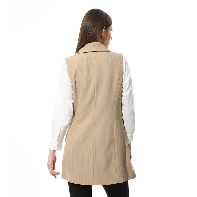Tailored Long Vest with Pinstripes – Beige