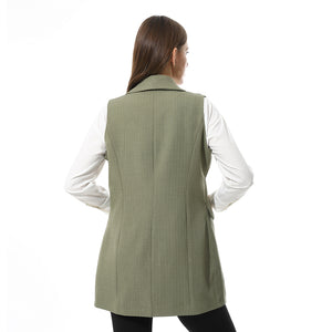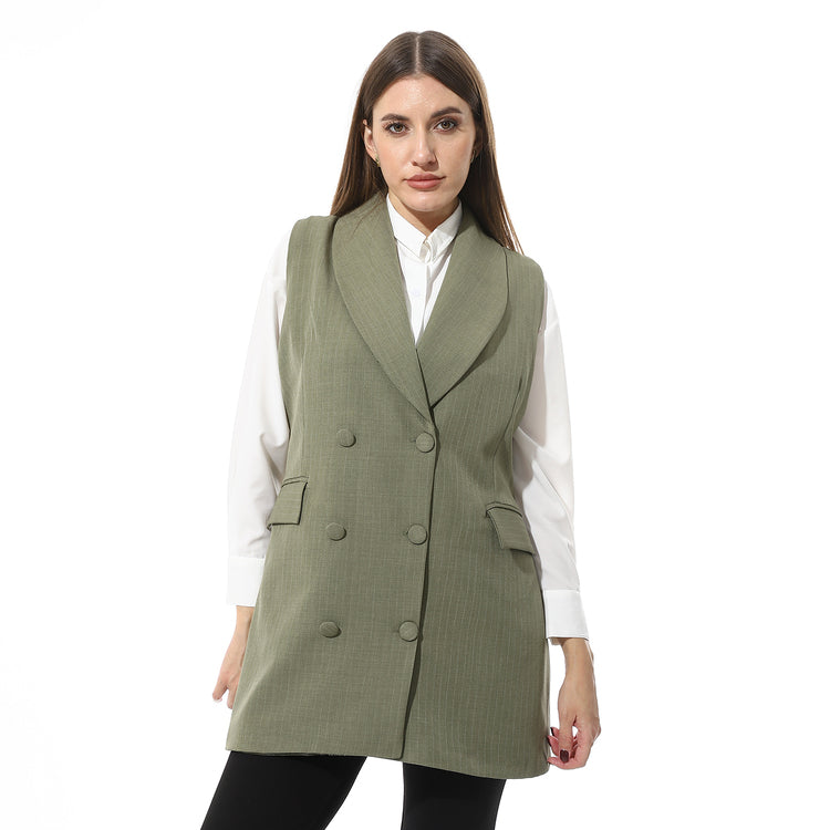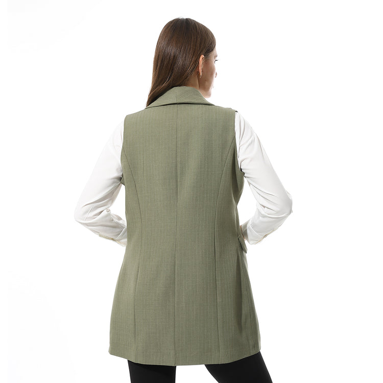 Tailored Long Vest with Pinstripes ƒ?? Olive Green