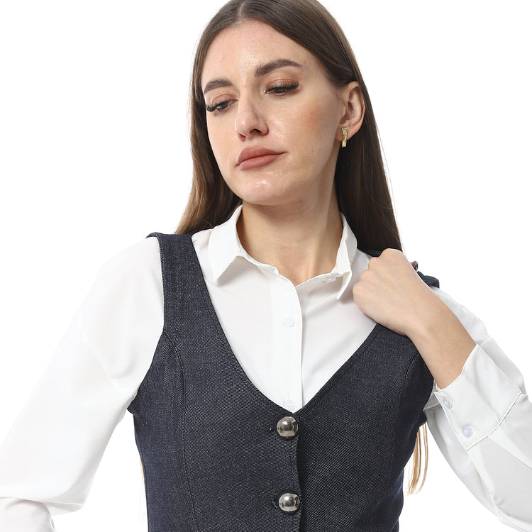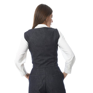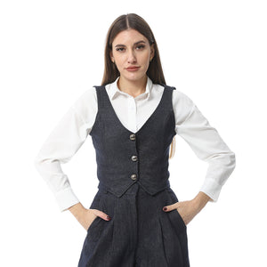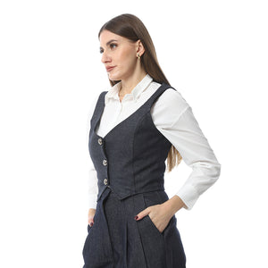 A chic and modern denim vest designed for effortless layering. Crafted from premium-quality denim, this piece blends timeless tailoring with a contemporary edge, giving you a flattering structured fit that pairs perfectly with shirts or high-waist trousers.
