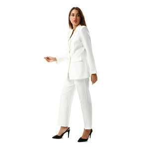 Crafted from premium crepe fabric, this sophisticated white suit combines timeless elegance with modern tailoring. Designed to deliver confidence and comfort, it’s perfect for formal events, office wear, or polished day looks.