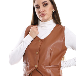 Buttoned Leather Vest ƒ?? Camel Brown