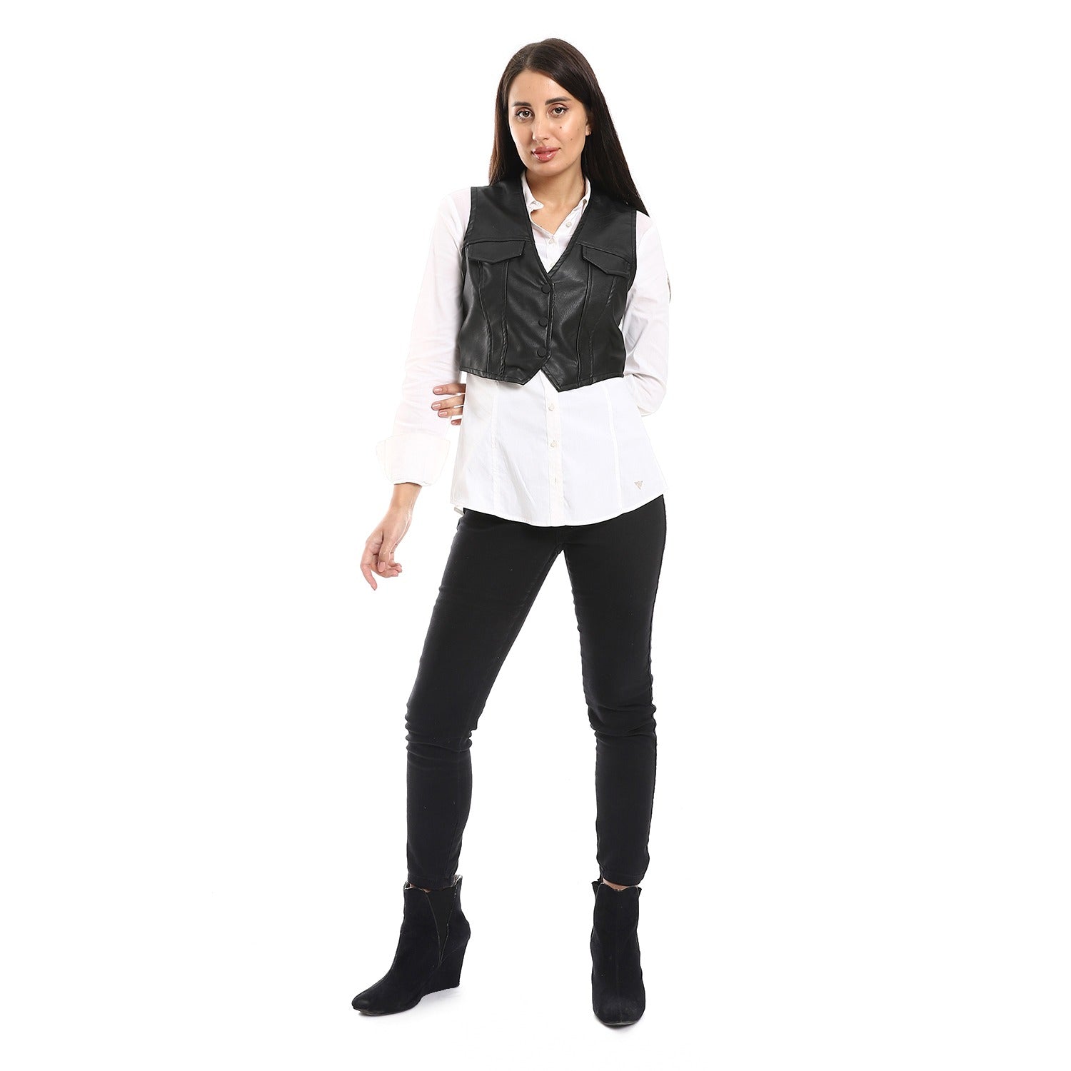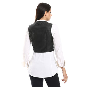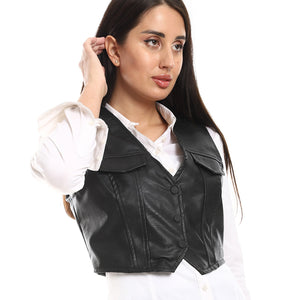 Elevate your look with this chic black tailored leather vest. Designed with sharp detailing and a structured silhouette, it’s a timeless layering piece that adds a bold touch to any outfit.