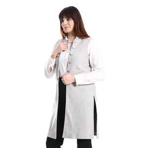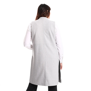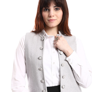 Wool-Blend Longline Vest with Stitched Buttons – Light Grey