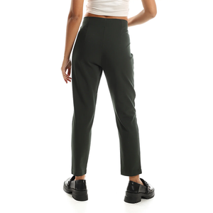 High-Waist Slim Pants - Forest Green