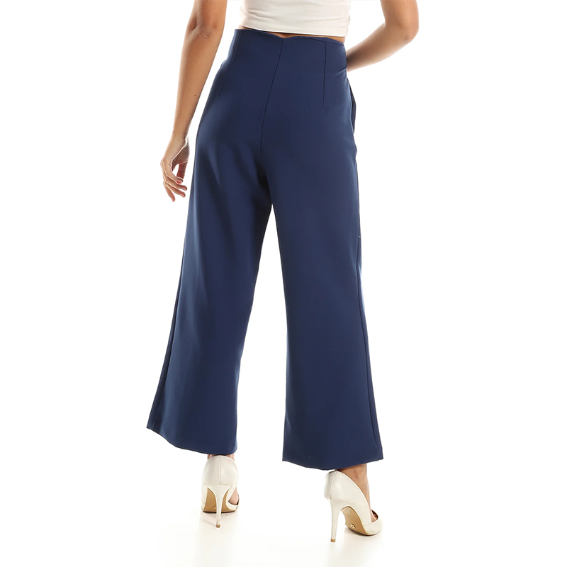 Elevate your wardrobe with these navy-blue high-waist pants — a statement piece that merges sophistication with effortless comfort. Designed to elongate your silhouette, these trousers are a timeless essential for chic everyday or office wear.