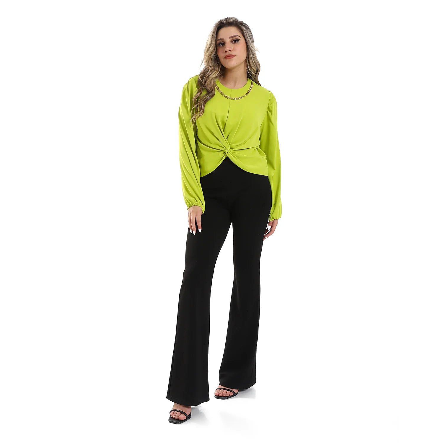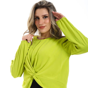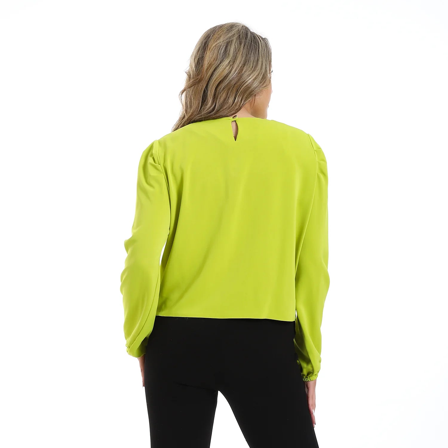 Rayon Twist Front Long-Sleeve Blouse -Neon yellow