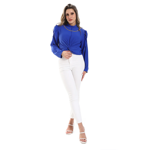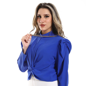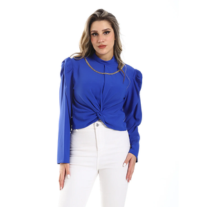 Rayon Twist Front Long-Sleeve Blouse - Blue