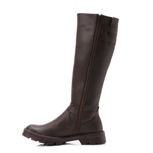 Own the streets with these striking knee-high boots crafted for power and confidence. Made from premium PU leather, they feature bold metal buckles and decorative straps that enhance their rugged yet stylish look. The chunky rubber sole ensures traction, durability, and unbeatable comfort, making them perfect for everyday wear.