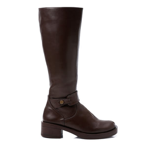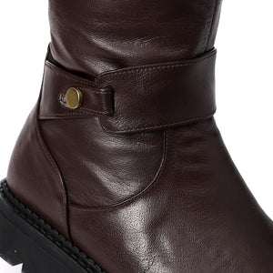 Step into timeless sophistication with these Classic Black Leather Riding Boots. Crafted from smooth leather, these mid-calf boots feature a sleek silhouette with a round toe, a solid block heel, and a subtle buckle-ring accent that adds a touch of character. The slip-on design ensures ease of wear, while the hard rubber sole offers excellent durability and traction — perfect for daily wear or a refined winter look.