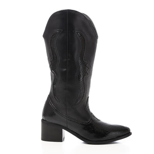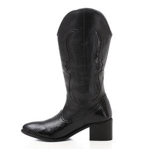 Western Leather Mid-Calf Boots - Black