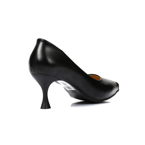 Elevate your elegance with these Black Leather D’Orsay Pumps, designed to embody timeless sophistication. Crafted from smooth genuine leather, they feature a pointed toe capped with a chic metallic gold accent for a refined finish. The 5 cm thin heel adds just the right amount of height while maintaining comfort, making them ideal for both professional and evening wear. The open-side D’Orsay cut enhances femininity, ensuring a sleek silhouette with every step.