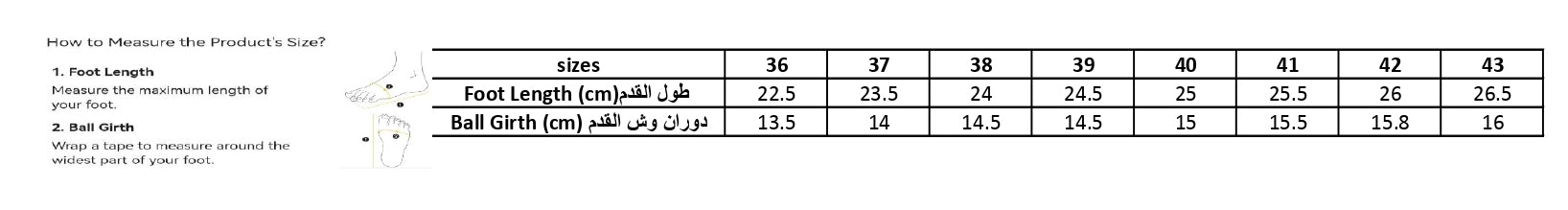 | Sizes | 36 | 37 | 38 | 39 | 40 | 41 |