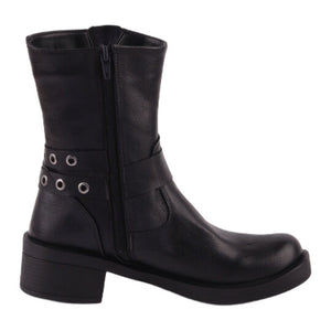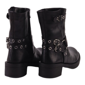 Step up your style game with these Genuine Leather Biker Boots — a perfect blend of confidence, comfort, and durability. Featuring a smooth leather upper, metallic buckle accents, and precise stitching, these boots are designed to make a bold statement. The round toe ensures all-day comfort, while the rubber sole provides superior traction. With their sturdy 3.5 cm block heel and side zipper for easy wear, they’re ideal for anyone seeking both edge and elegance.