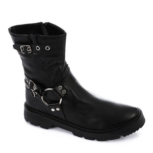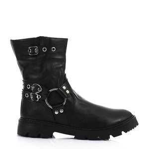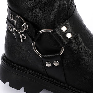 Embrace bold style and unmatched durability with these Genuine Leather Biker Boots. Made from smooth premium leather, they feature metallic buckle details and reinforced stitching for a rugged yet refined appeal. The thick rubber sole ensures excellent grip and long-lasting wear, while the side zipper allows for easy on and off. Designed for confidence and comfort, these boots are the perfect fusion of attitude and craftsmanship.