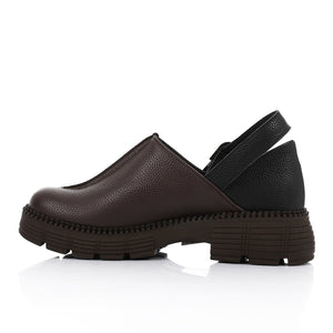 Embrace versatility and style with these Two-Tone Slingback Loafers. Designed for both comfort and sophistication, this unique pair blends the charm of classic loafers with the airy ease of espadrilles. Crafted from premium faux leather with a metallic silver back strap, it offers all-day comfort and durability. The sturdy rubber sole ensures excellent traction, while the adjustable buckle allows for a perfect fit.