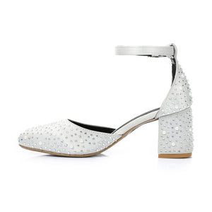 Step into timeless elegance with these Pearl-Embellished Block Heels. Crafted from luxurious satin and adorned with delicate pearls and crystals, these ankle-strap heels perfectly balance classic charm and modern sophistication. The comfortable block heel ensures stability, making them ideal for weddings, parties, or elegant evenings out.