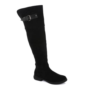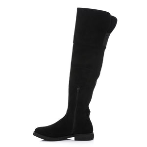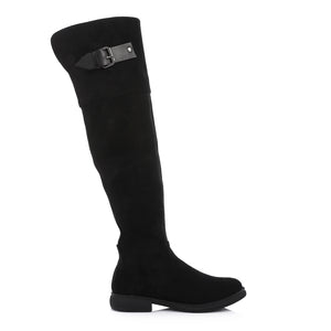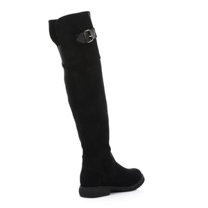 Own your stride with the Stretch Suede Over-The-Knee Boots. Crafted from soft stretchable suede, these boots redefine modern sophistication with their sleek silhouette and rich black tone. The elegant buckle detail adds a subtle statement, blending edge with timeless femininity.