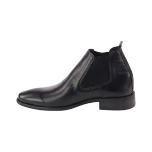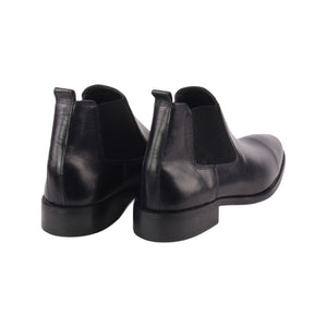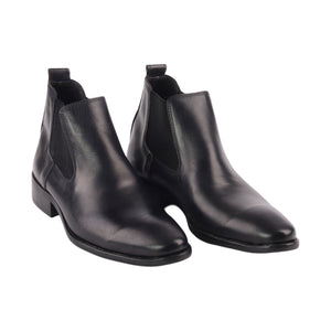 Crafted from high-quality faux leather, these ankle boots feature a minimalist slip-on design with elastic side panels for easy wear and a perfect fit. The clean silhouette and matte black finish make them versatile enough to pair with jeans, chinos, or formal trousers alike.