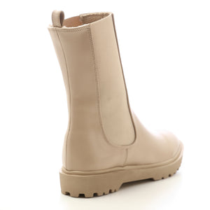 Step into modern sophistication with the Elastic Leather Half Boots. Designed with a sleek minimal silhouette, these boots feature smooth beige leather paired with flexible elastic side panels for easy wear and a snug, supportive fit. The clean half-boot design gives them a contemporary edge, while the durable treaded sole ensures both comfort and stability. Perfect for transitional weather, these boots bring understated elegance to any outfit — from denim to dresses.