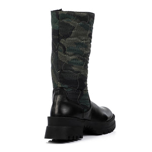 Step into confidence with the Two-Tone Camo Leather Boots, a perfect mix of bold attitude and everyday comfort. The boot features a smooth black leather base paired with a quilted camouflage textile shaft for a rugged, fashion-forward edge. Designed for durability and modern appeal, itβs ideal for those who like their style to stand out with purpose.
