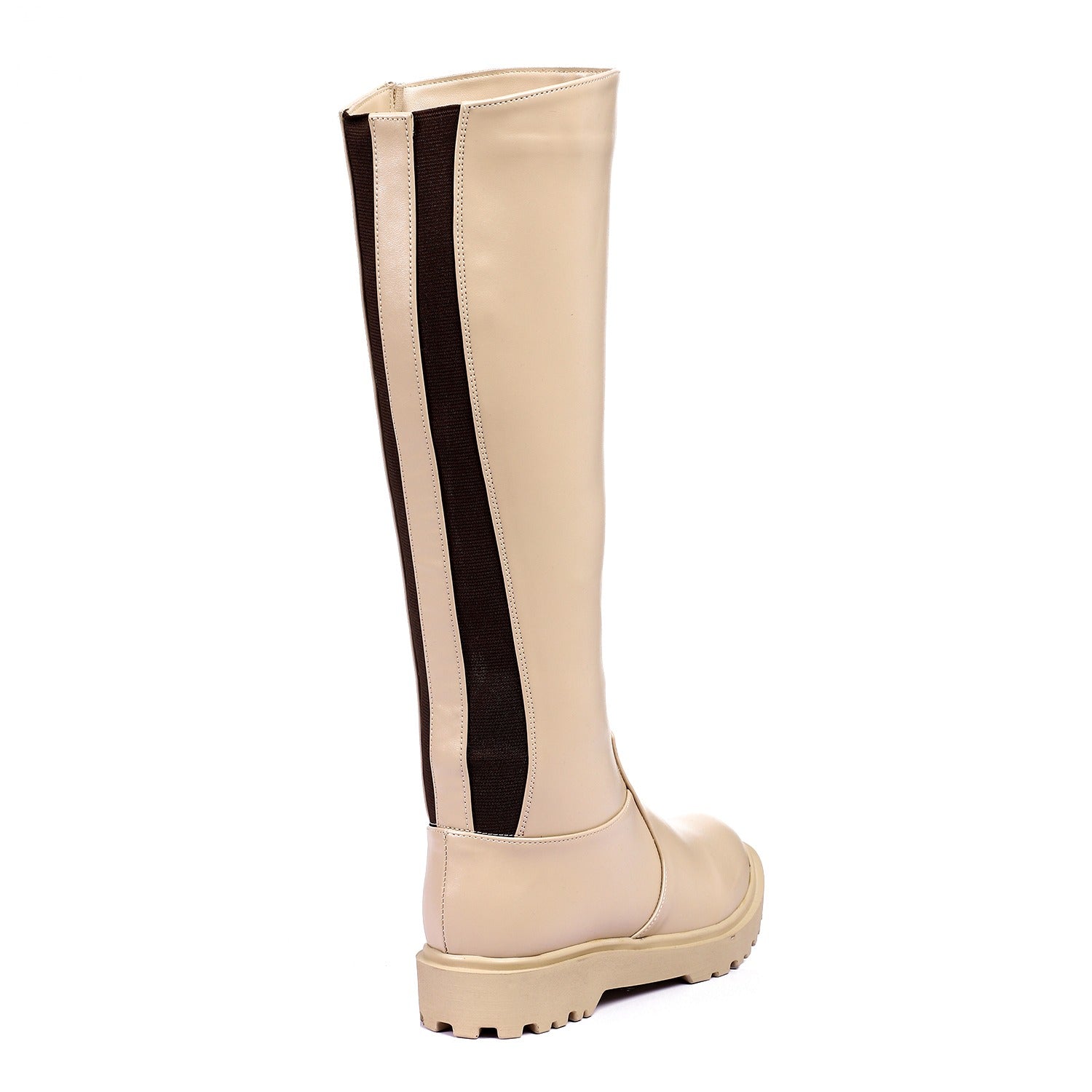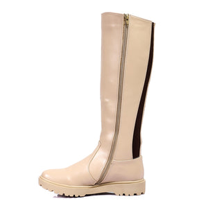 Step out in timeless sophistication with the Classic Knee-High Leather Boots. Crafted from smooth beige leather, these boots offer an elegant yet modern silhouette perfect for both casual days and polished looks. The round toe and solid rubber sole provide comfort and durability, while the side zipper ensures easy wear.