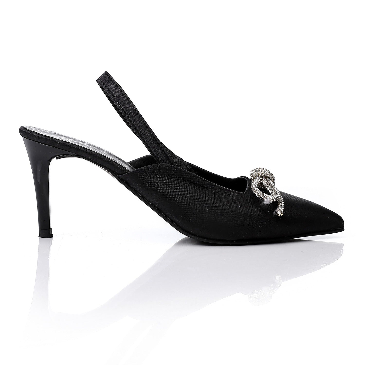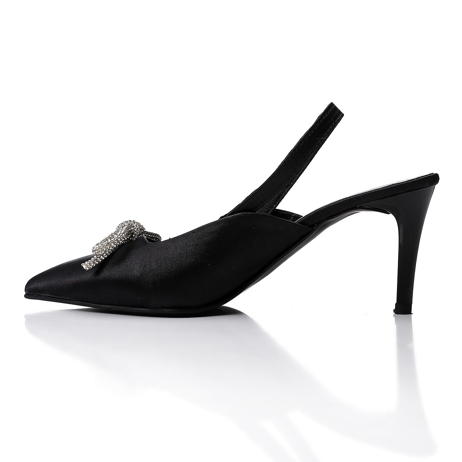 Crafted from lustrous satin fabric, these heels feature a chic pointed toe adorned with a delicate bow detail, adding a subtle touch of glamour to your look.