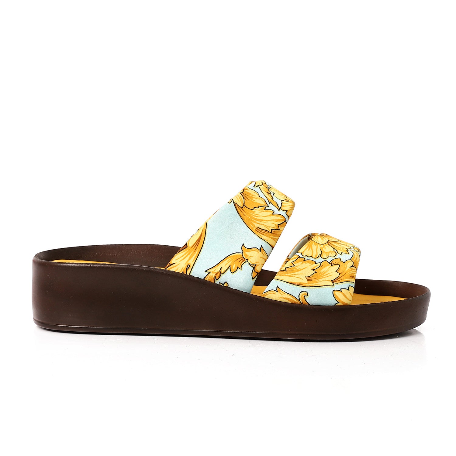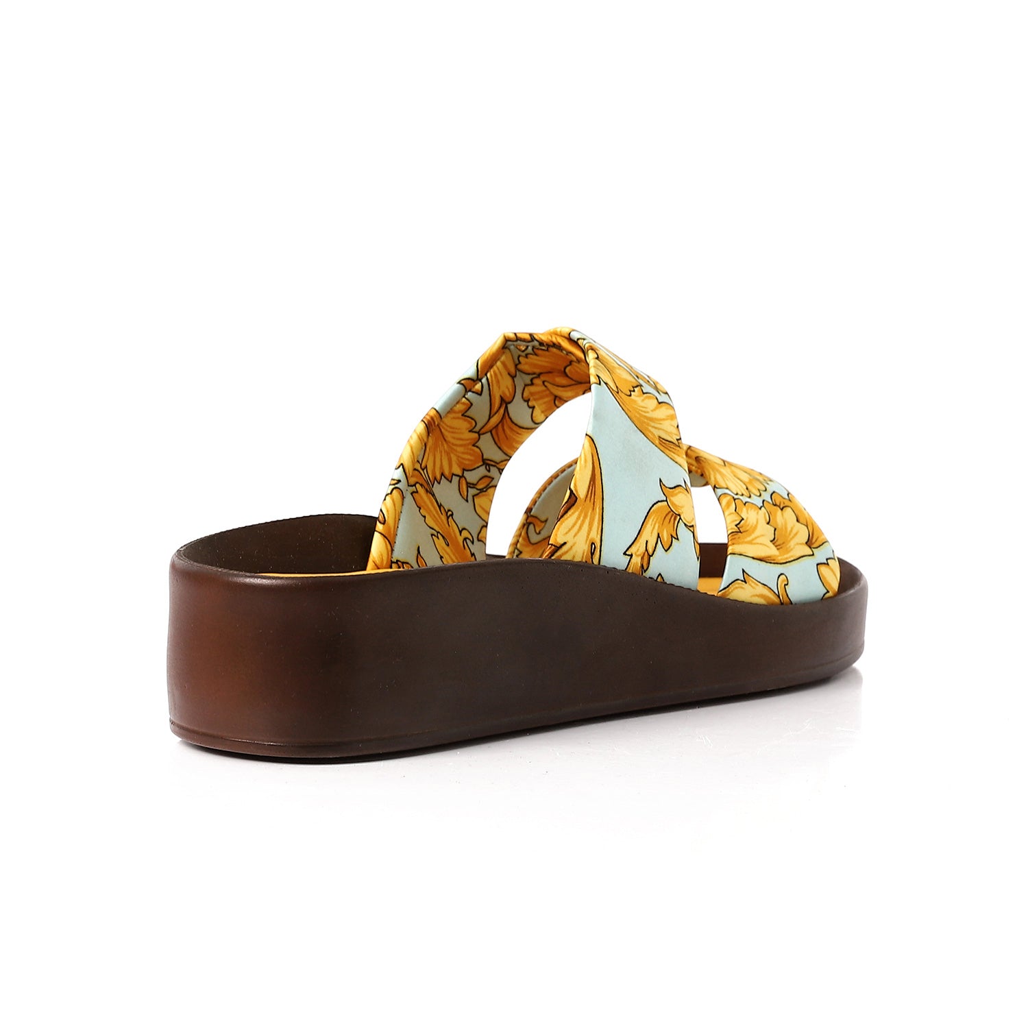 Step into summer with effortless style and comfort in the Printed Strap Platform Slippers from Mr. Joe.