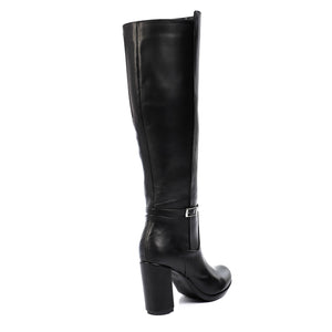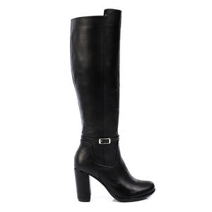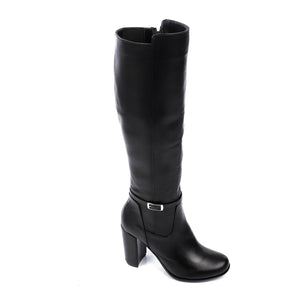 High Knee Leather Boots with Block Heel ƒ?? Black