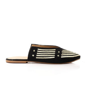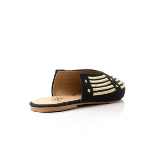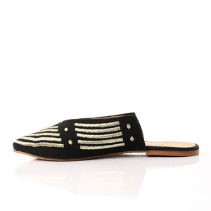 Striped Embroidered Slip-On Mules - Black