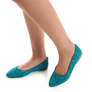 Add a chic and simple touch to your look with these Teal Patterned Pointed Flats from Mr. Joe.