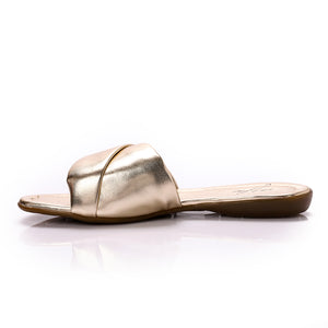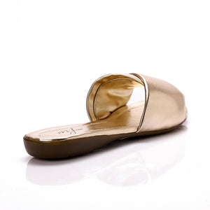 Step into an elegant yet comfortable look with these Gold Cross-Strap Leather Slippers from Mr. Joe.