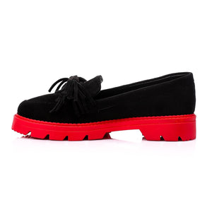 Step into confidence and standout style with these Black Suede Loafers featuring a striking red sole from Mr. Joe.