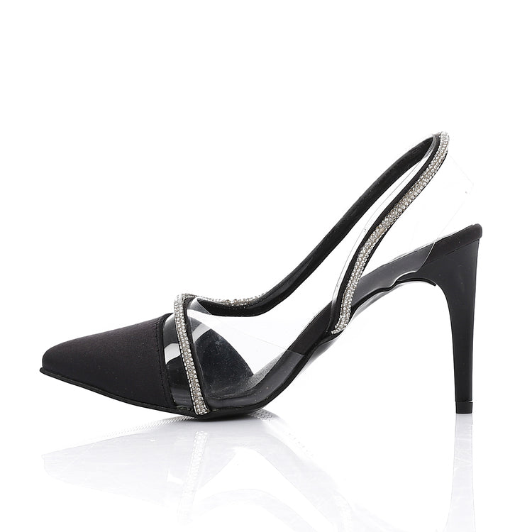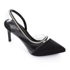 Step into timeless elegance with these Black Pointed Pumps adorned with a dazzling crystal trim. Designed to combine luxury with comfort, these heels feature a sleek silhouette and refined details that make them perfect for both evening wear and chic events.