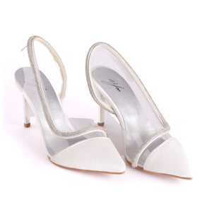 Crystal-Trim Pointed Pumps - White