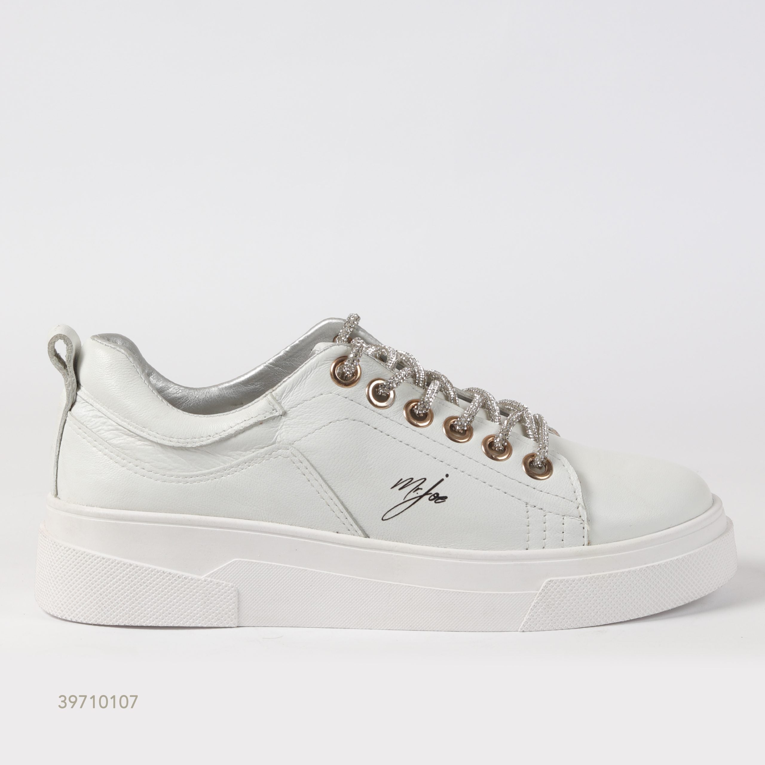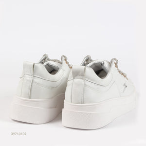 Elevate your casual look with these white chunky sneakers, designed with a metallic twist.