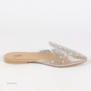 Step into sparkle with these crystal-studded transparent mules that blend elegance and comfort effortlessly.