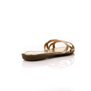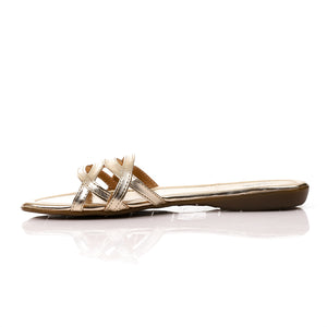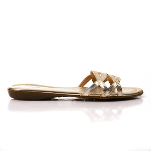 Add a touch of shine to your look with these silver cross-strap slides, designed for both comfort and elegance.
