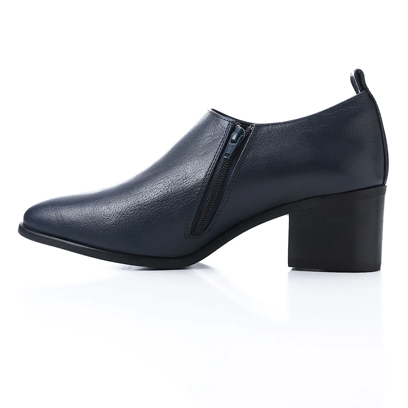 Leather Block Heel Ankle Boots ƒ?? Navy