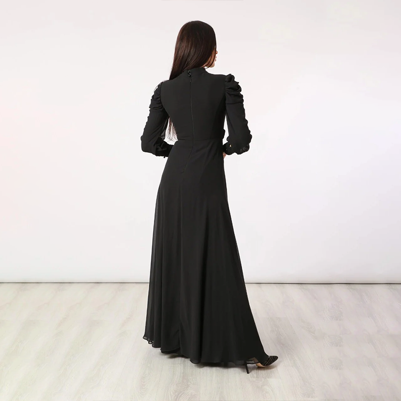 Make a timeless statement with this stunning black pleated maxi dress from Mr Joe — a perfect blend of elegance and sophistication. Its fluid silhouette and refined details make it ideal for evening events, formal gatherings, or special occasions.