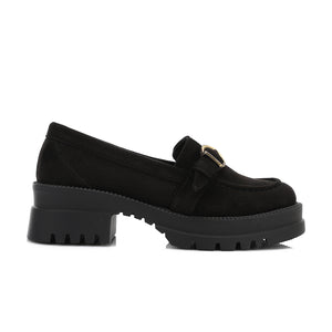 Women’s Buckle Strap Chunky Loafers – Black