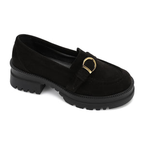 Step into bold everyday style with these women’s chunky loafers, crafted with a soft suede finish and a decorative buckle strap. The thick lug sole adds a trendy edge while providing comfort and stability, making them perfect for casual, smart-casual, and autumn outfits.