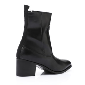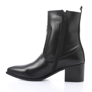 Upgrade your everyday and evening looks with these classic black ankle boots, designed with a sleek silhouette and a comfortable block heel. Crafted with a smooth leather-finish upper and a secure side zipper, they offer effortless elegance, stability, and all-day comfort—perfect for work, casual outings, or night looks.