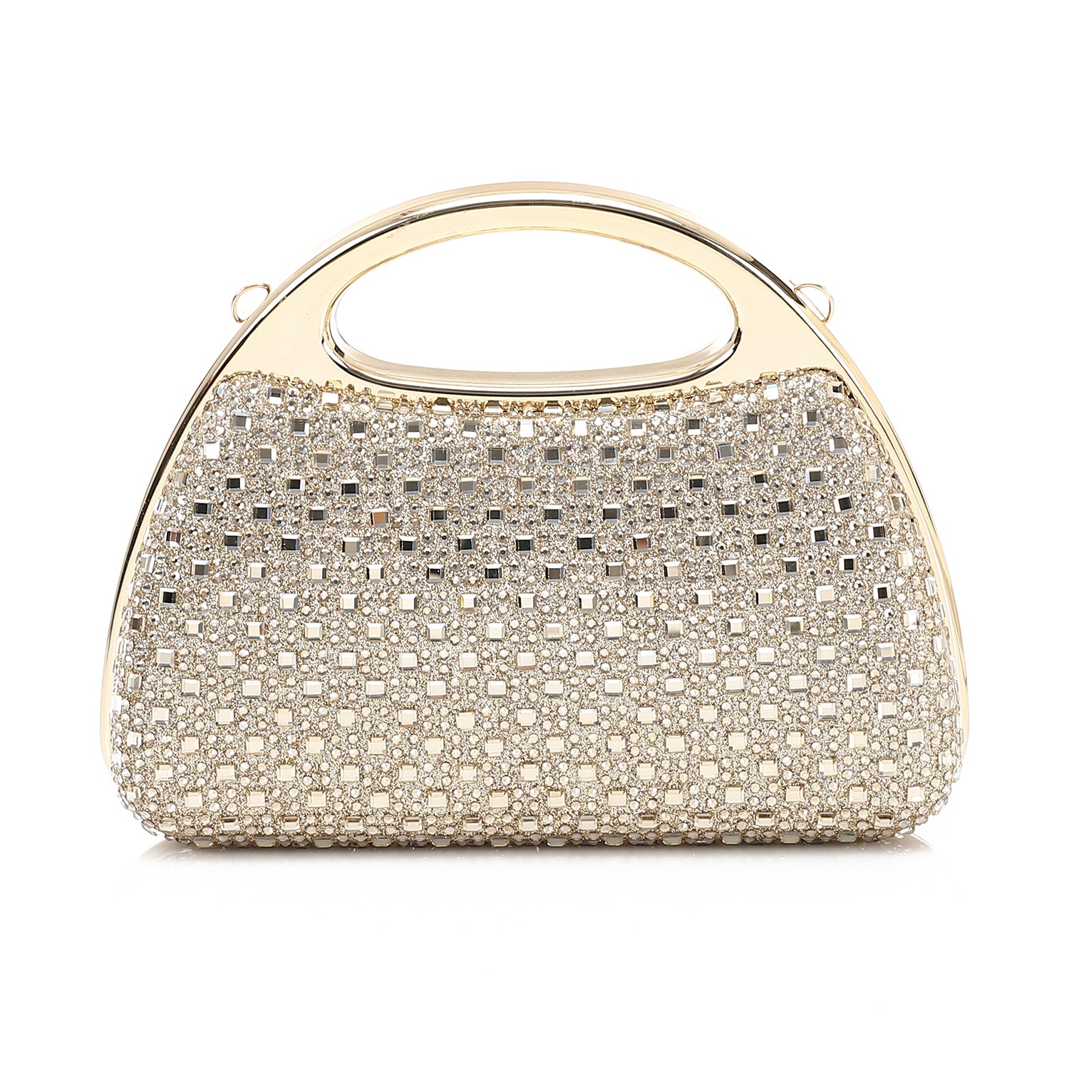 Shine with confidence carrying this exquisite silver clutch, beautifully adorned with intricate crystal embellishments that create a dazzling statement. Designed with a sleek metallic top handle and a structured silhouette, this piece combines elegance and functionality, making it the perfect companion for your most glamorous evenings and special occasions.