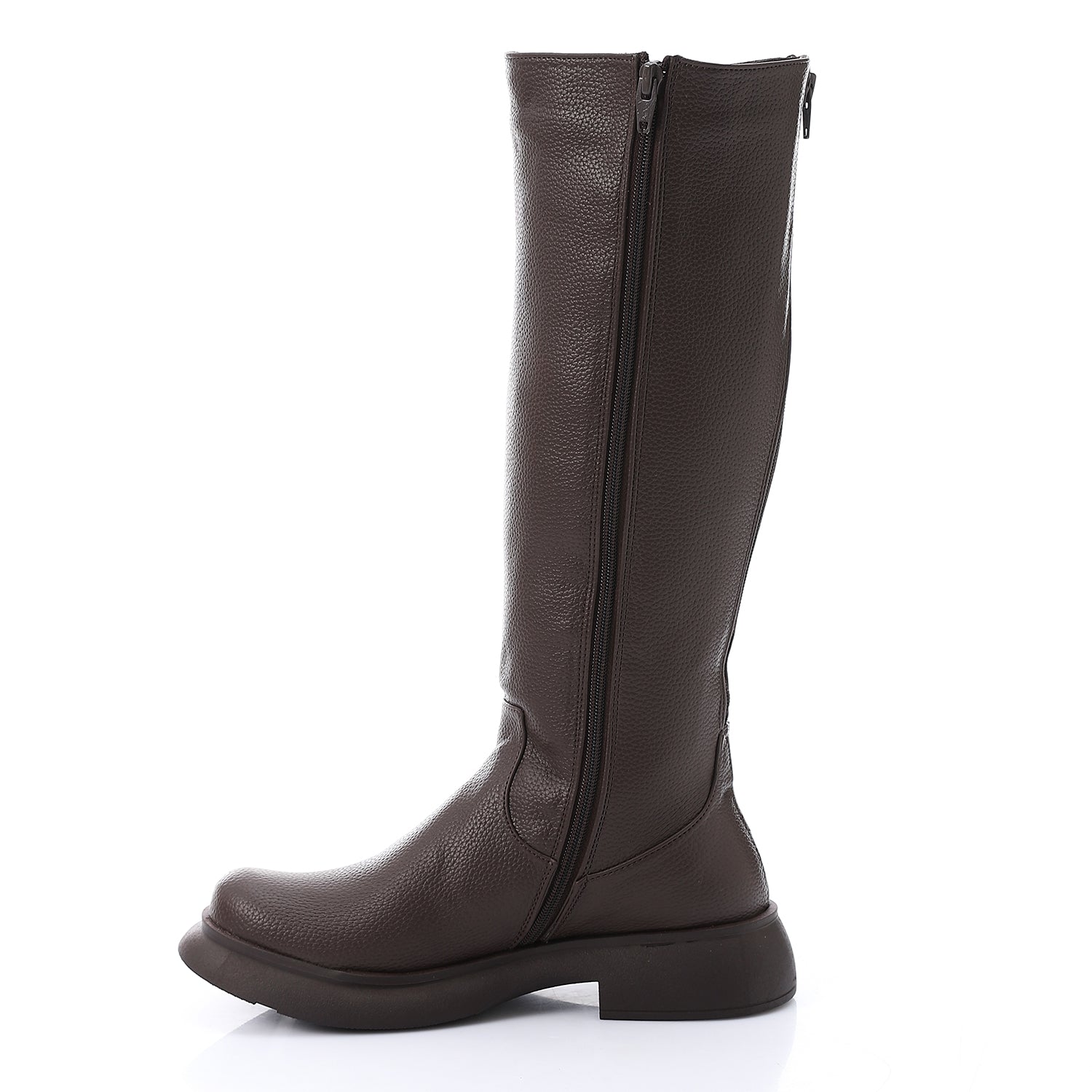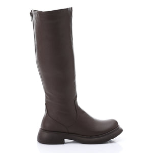 Double Zipper Knee-High Boots - Brown