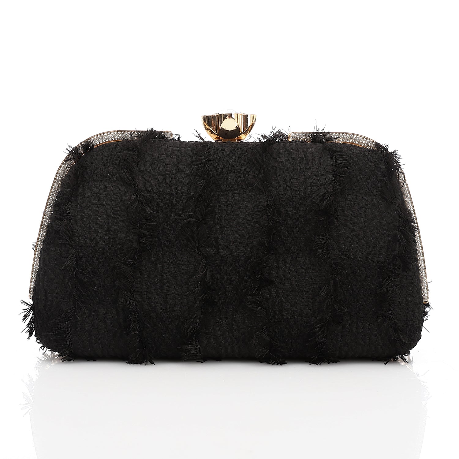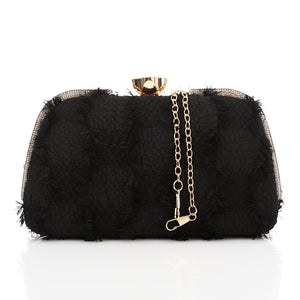 Fringed Texture Evening Clutch Black
