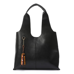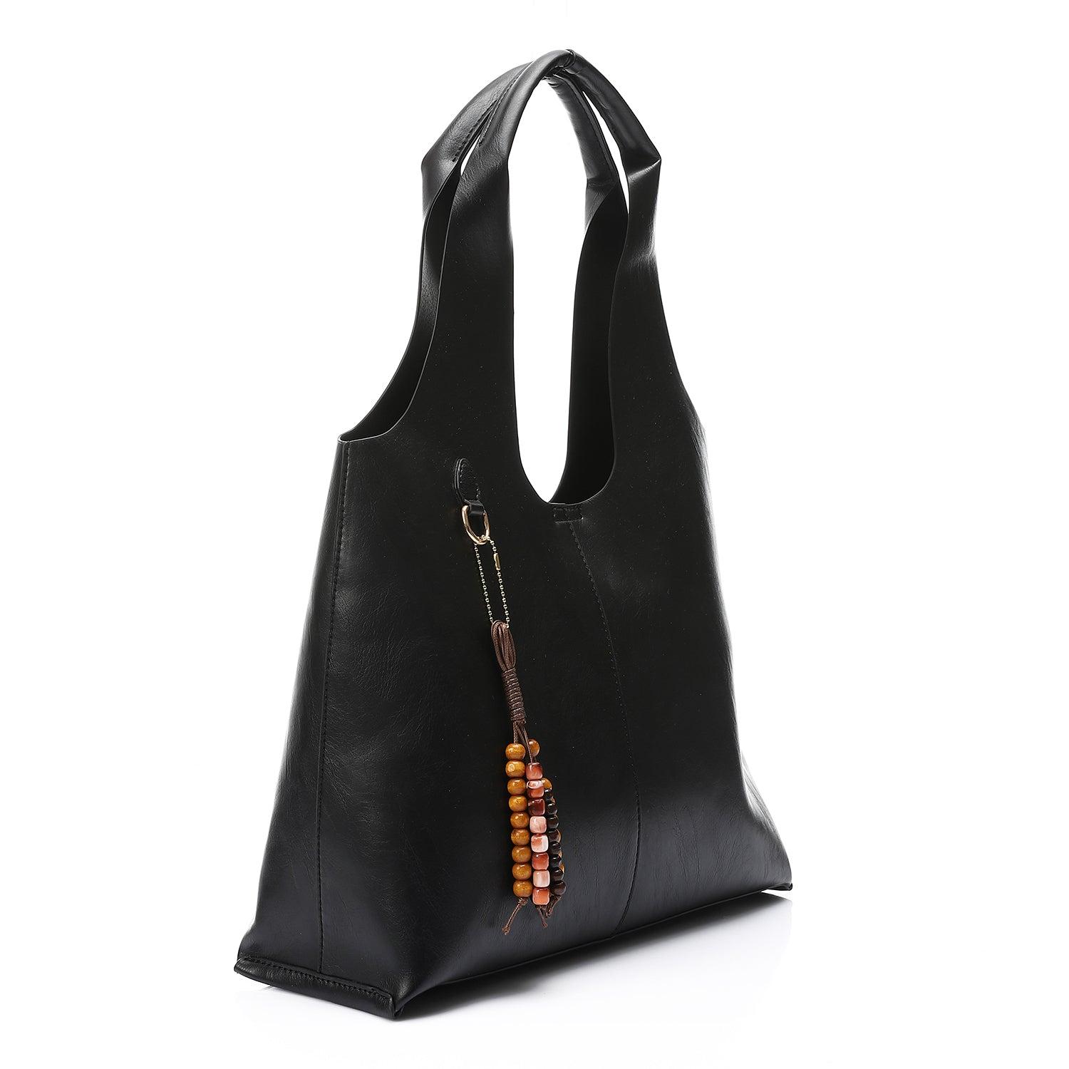 Designed for effortless elegance, this soft carry tote bag offers a roomy interior and a clean, modern silhouette. Finished with a decorative beaded accessory and comfortable top handle, it’s perfect for workdays, shopping, or casual styling.