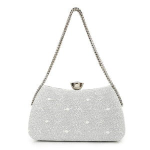 Synthetic Clutch Bag with Chain Strap - Off White & Silver