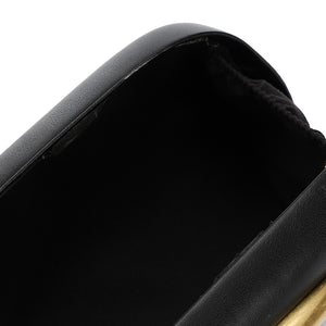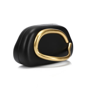 Make a bold impression with this modern black clutch, featuring a striking gold-tone statement handle. Designed to balance minimalism and luxury, this piece adds a sophisticated edge to your evening outfits.